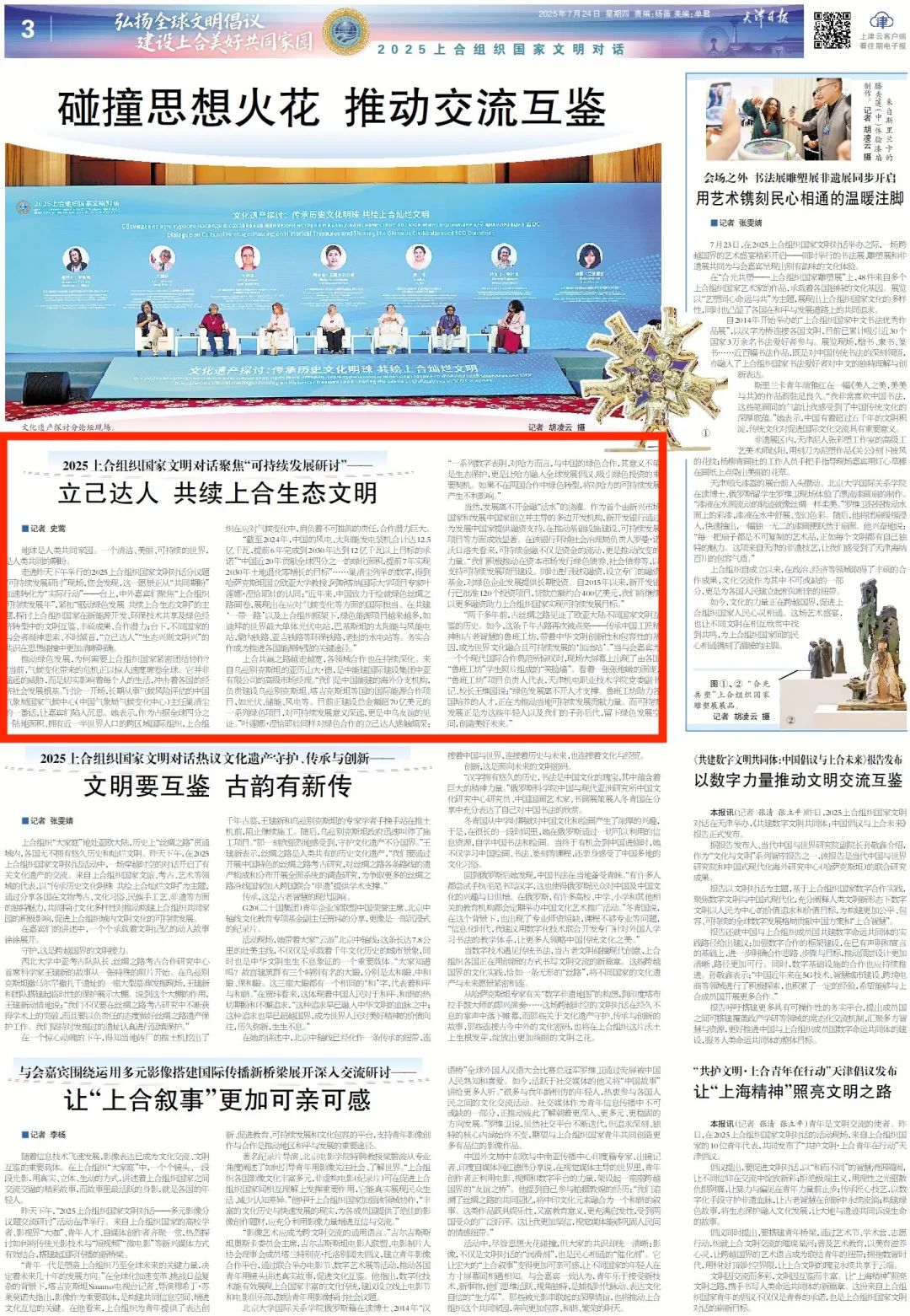 走进昨天下午举行的2025上合组织国家文明对话分议题“可持续发展研讨”现场,您会发现,这一愿景正从“共同期盼”加速转化为“实际行动”——台上,中外嘉宾们聚焦“上合组织可持续发展年”,紧扣“驱动绿色发展 共续上合生态文明”的主题,探讨上合组织国家在新能源开发、环保技术共享及绿色经济转型中的文明互鉴、丰硕成果、合作潜力;台下,不同国家的与会者凝神思索、不时颔首,“立己达人”“生态兴则文明兴”的共识在思想碰撞中更加清晰明确。