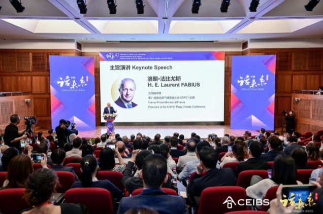 10月18日,在《巴黎协定》签署10周年之际,法国前总理、第21届联合国气候变化大会(COP21)主席洛朗·法比尤斯(Laurent Fabius)做客中欧国际工商学院“中欧话未来”系列论坛,围绕“21世纪的气候外交:《巴黎协定》给中国、欧洲及世界的启示”这一主题,展开深刻且极富前瞻性的精彩分享。法国驻上海总领事王度(Joan Valadou)、波兰驻上海总领事亚当·布拉尔赤克(Adam Bralczyk)、葡萄牙驻上海总领事夏思雅(Sílvia Inácio)和多家全球知名企业管理者出席论坛。