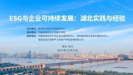 10月25日,一场以“ESG与企业可持续发展:湖北实践与经验”为主题的研讨会在武汉成功举办。会议由武汉长江生态文明研究中心联合中南财经政法大学建行学院等多家机构共同主办,吸引了来自政府部门、高校、科研机构及企业的众多代表齐聚一堂,围绕ESG领域的政策导向与企业实践展开深度对话,为构建湖北高质量ESG生态体系凝聚智慧。