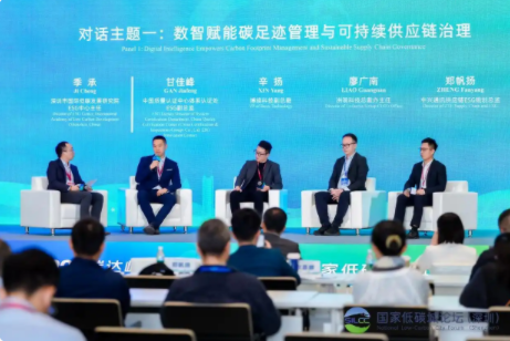 当天的企业ESG发展新范式论坛还举行了两场圆桌论坛。其中,中国质量认证中心体系认证处ESG副总监甘佳峰、博续科技副总裁辛扬、洲明科技总裁办主任廖广南、中兴通讯供应链ESG规划总监郑帆扬围绕“数智赋能碳足迹管理与可持续供应链治理”这一主题展开交流;