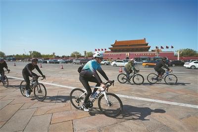 自行车骑行爱好者在北京长安街上骑行。新华社记者 鞠焕宗摄