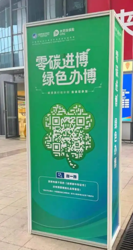 2025年进博会场馆内的碳中和行动计划。王崟欣摄
