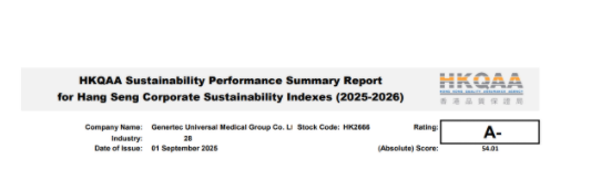 环球医疗2025年恒生可持续发展评级由BBB级提升至A-级