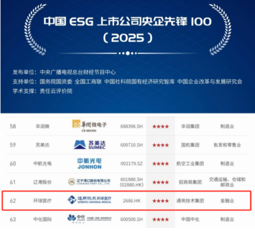 环球医疗连续三年入选央视“ESG先锋100”系列榜单