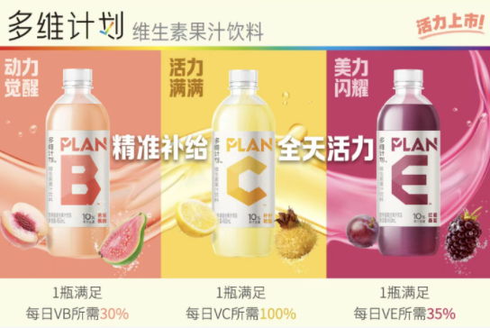 值得注意的是,中国功能饮料五年扩容近50%,但市场产品仍停留在“泛补充”阶段,未能充分满足消费者日益精细化的健康需求。康师傅敏锐洞察市场需求,一方面首推维生素果汁饮料“多维计划”,以“精准补维+超级水果”建立差异化认知,保证口感的同时满足消费者不同场景下精准补充VB、VC、VE的需求。
