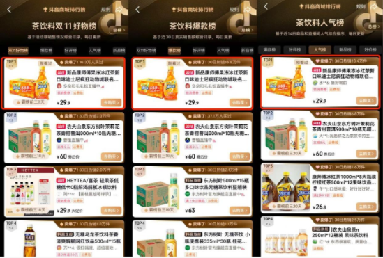 康师傅冰红茶冻冻茶以“可以喝的果冻”为产品定位,创新性地在传统冰红茶中加入真实果冻颗粒,打造出独特嚼感与清爽口感相结合的新体验。新品上线10小时GMV突破100万,5日内即冲破1130万元,并强势横扫抖音商城茶饮料人气榜、双11好物榜及爆款榜三大榜单榜首。该产品不仅延续了经典冰红茶的风味,更通过添加蒟蒻粉丰富口感层次,进一步拓展了茶饮边界,通过“喝+嚼”的双重感官交互,为消费者带来耳目一新的选择。