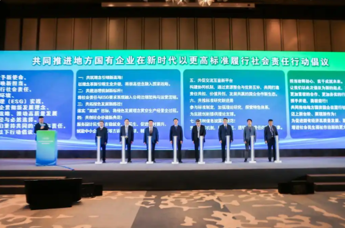 为凝聚共识、汇聚合力,会上,山东省国资委与上海、深圳、沈阳、济南、青岛、成都、郑州等多地市国资委共同发布《共同推进地方国有企业在新时代以更高标准履行社会责任行动倡议》,从共筑理念引领新高地、共建治理机制新标杆、共拓绿色发展新路径、共创社会价值新典范、共促交流互鉴新平台、共推标准研究新进展、共树信息披露新规范等七个方面发出倡议,倡导地方国企在履行社会责任和深化ESG实践中走在前列、勇立潮头。
