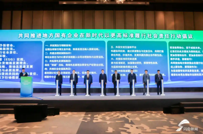 为凝聚共识、汇聚合力,会上,山东省国资委与上海、深圳、沈阳、济南、青岛、成都、郑州等多地市国资委共同发布《共同推进地方国有企业在新时代以更高标准履行社会责任行动倡议》,从共筑理念引领新高地、共建治理机制新标杆、共拓绿色发展新路径、共创社会价值新典范、共促交流互鉴新平台、共推标准研究新进展、共树信息披露新规范等七个方面发出倡议,倡导地方国企在履行社会责任和深化ESG实践中走在前列、勇立潮头。