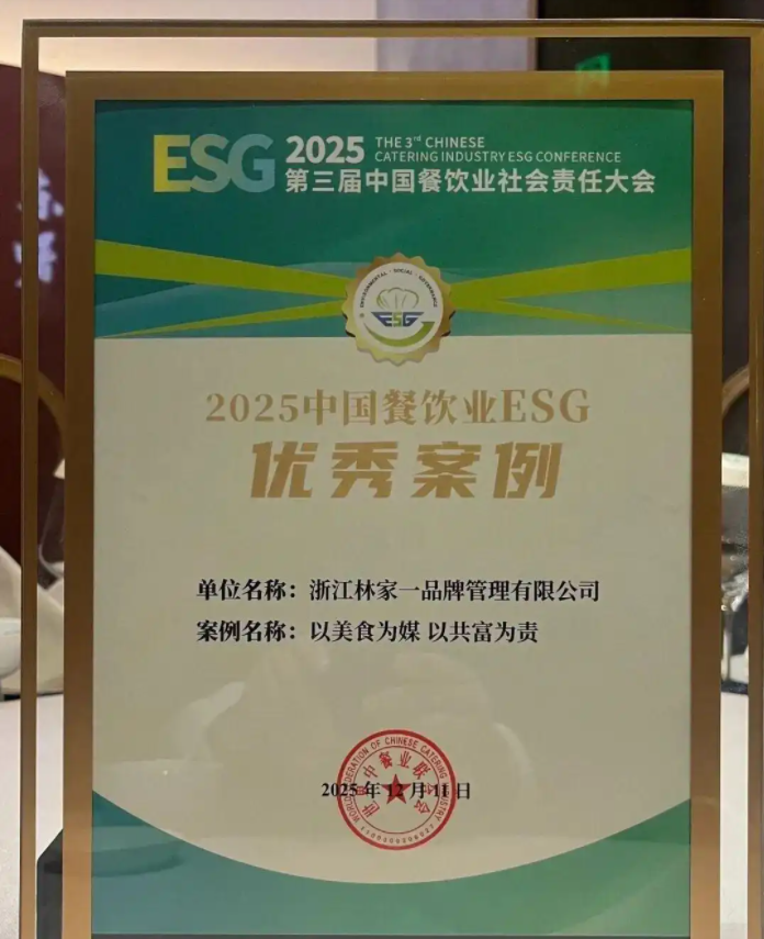 近日,林家一集团获世界中餐业联合会授予ESG(环境、社会、治理)优秀案例称号。这家拥有二十余年发展历程的餐饮企业,通过在生态守护、文化传承、共富帮扶等领域的持续深耕,为餐饮行业实现商业价值与社会价值共生提供了鲜活范本。