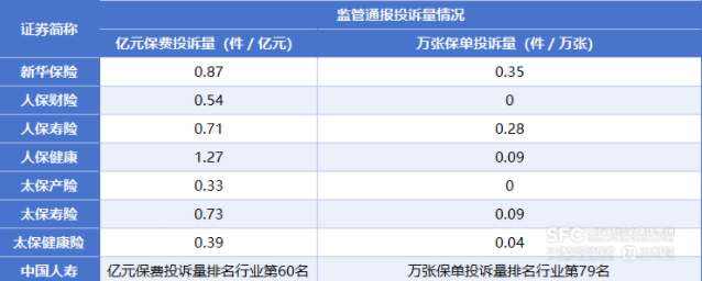 万张保单投诉量的分化更为突出:人保寿险的该指标为0,太保健康、人保健康分别以0.04件/万张、0.09件/万张处于较低区间;新华保险的万张保单投诉量达到0.35件/万张,是当前统计主体中该指标相对突出的主体。