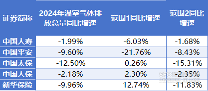 报告期内,中国人寿、中国平安、中国太保、中国人保、新华保险5家头部保险公司的年度总碳排放同比均下降,中国太保的降幅最大,达到12.5%。