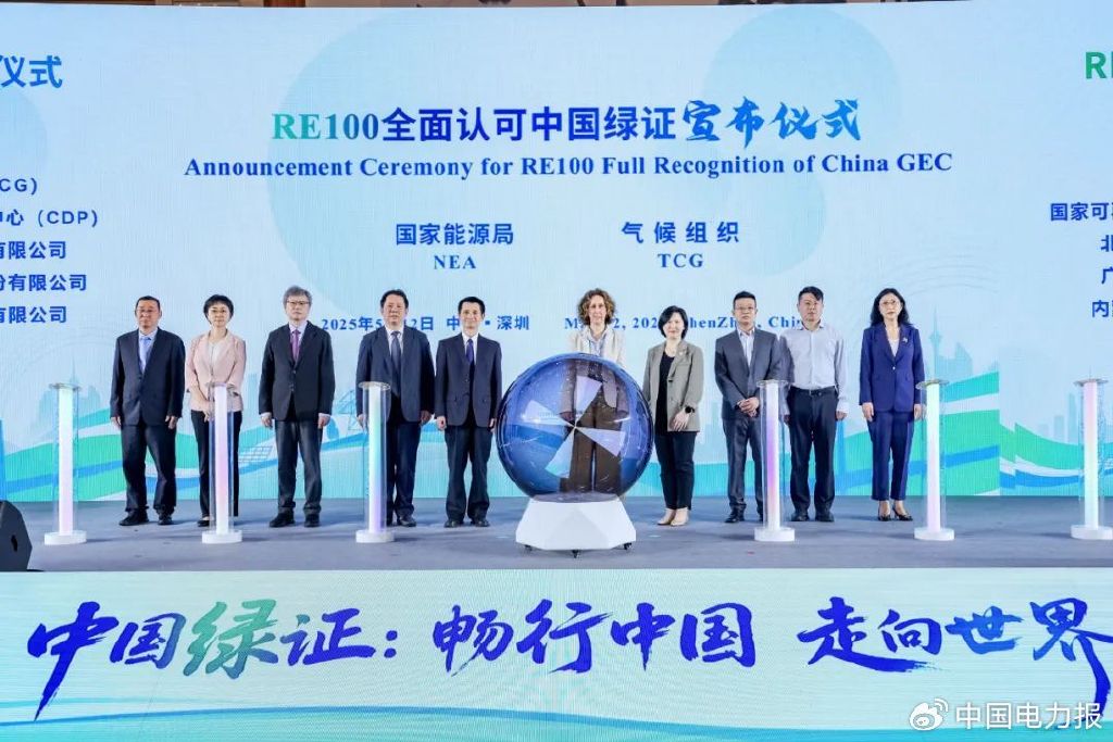 5月12日,“中国绿证:畅行中国 走向世界——绿证走进粤港澳大湾区”活动在广东深圳举行。活动现场举行了全球绿色电力消费倡议(RE100)全面认可中国绿证宣布仪式,发布了2024年粤港澳绿色电力(绿证)消费报告。来自国家能源局、地方政府、电力交易中心、国际组织、粤港澳三地企业及智库等单位的200余位嘉宾出席活动,共商绿证市场高质量发展之路。