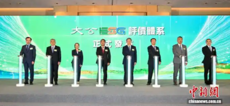 10月21日,2025香港国际ESG论坛暨年度榜单评选颁奖典礼在香港举行。图为香港特区政府政务司副司长卓永兴(右四)等嘉宾出席“大公ESG评价体系”发布仪式。 (香港特区政府新闻处 供图)