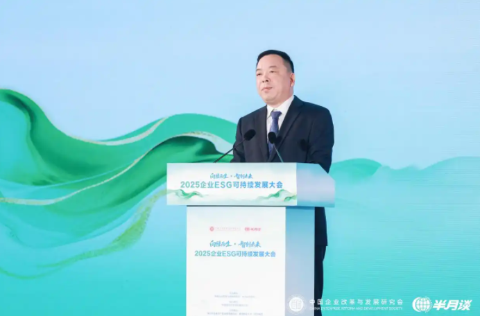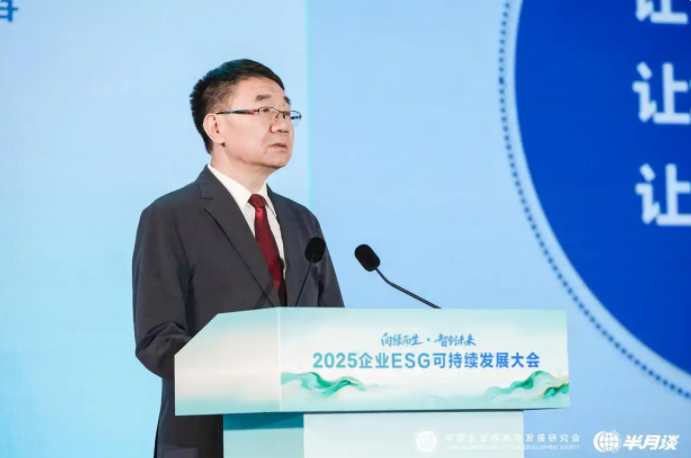 中国企业改革与发展研究会会长、国务院国资委原党委委员、秘书长彭华岗在致辞中,从实践角度阐述了ESG融入价值创造的路径。他指出,企业需将ESG从合规要求提升为战略核心,通过治理优化、技术创新与社会责任融合,筑牢可持续发展的三大支柱。要通过“政策引领、实践落地”,凸显ESG在积极响应国家战略中的关键作用。